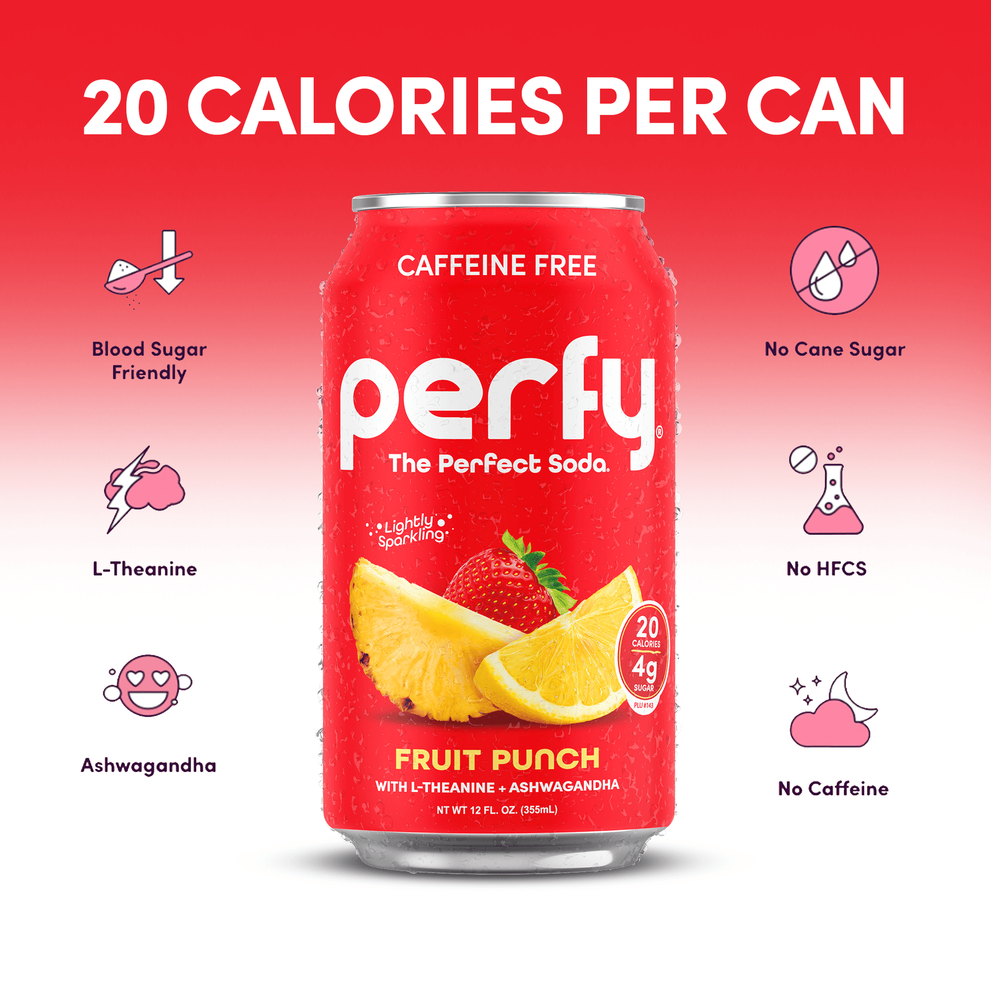 Each can of Fruit Punch has 4g sugar, 20 calories, and is enhanced with 50mg L-Theanine and 30mg of Ashwagandha.