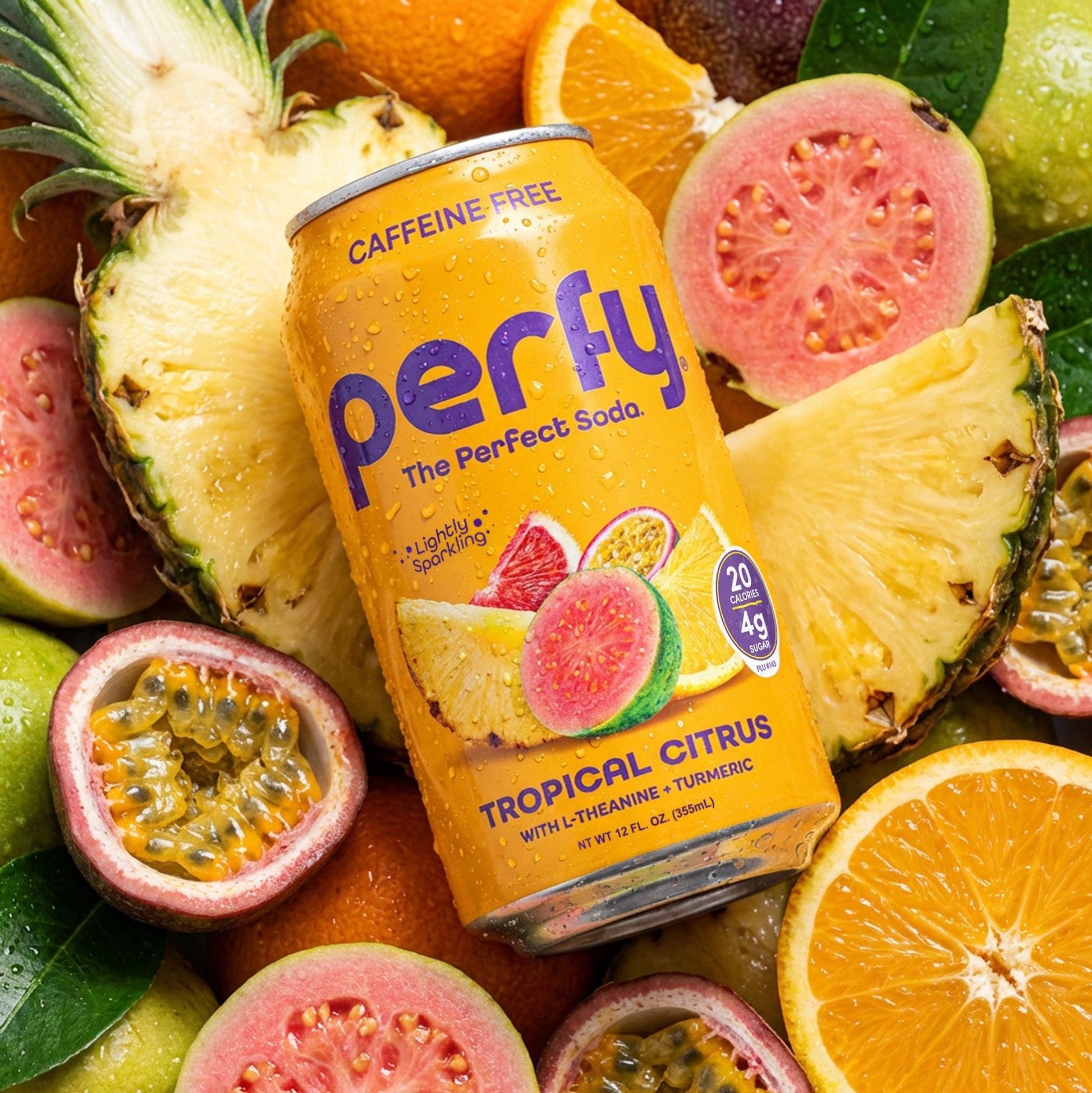 A: Perfy is a delicious soda with up to 90% less sugar than traditional soda. And it's sometimes enhanced with functional ingredients...but sometimes not...like for limited edition flavors.